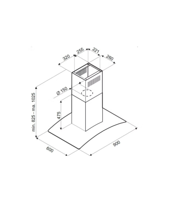 تربو لاين شفاط هرمي 90 سم قوة الشفط 850 م3/س اسود Air line Plus 90 BK