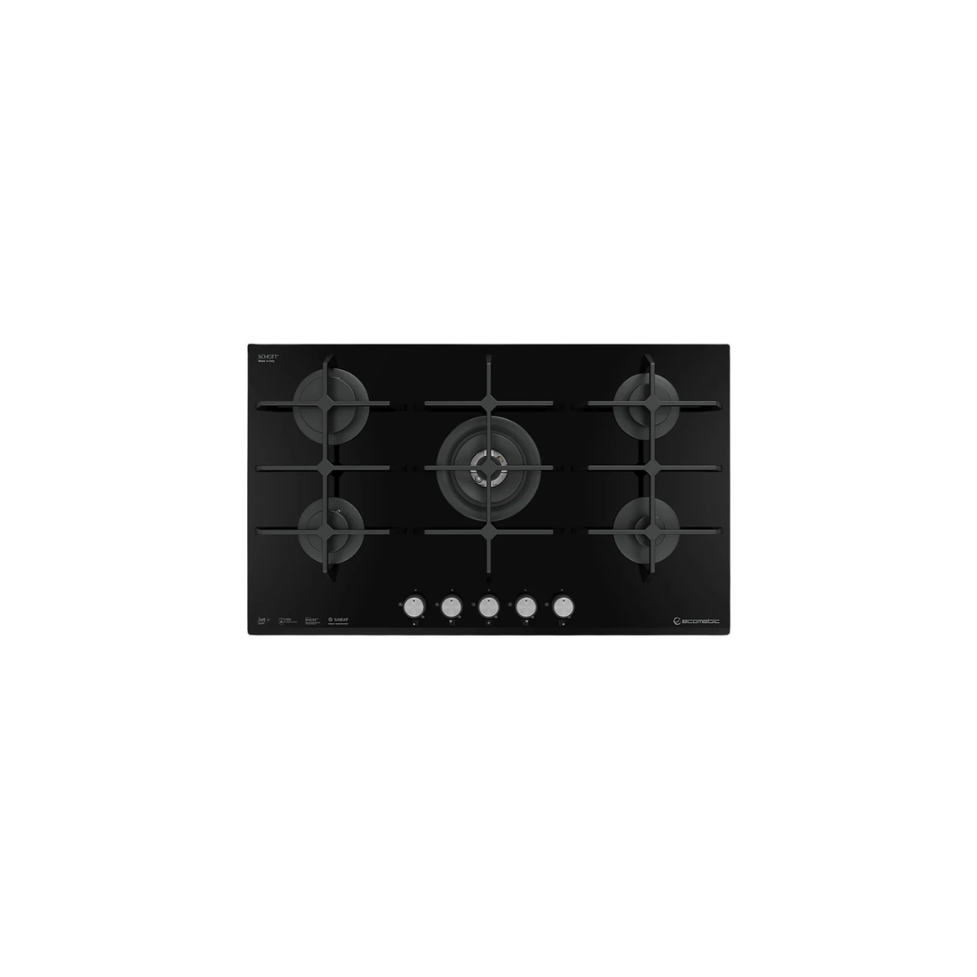 مسطح بلت إن غاز 90 سم كريستال أسود – إيكوماتك | 5 شعلات - S9117RC